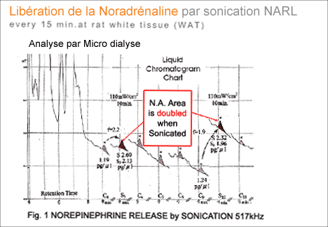 Grace a la methode tres sophistiquee de microdialyse, nous avons observe la concentration locale de Noradrenaline qui double dans le tissu adipeux blanc apres 10 minutes de traitement.